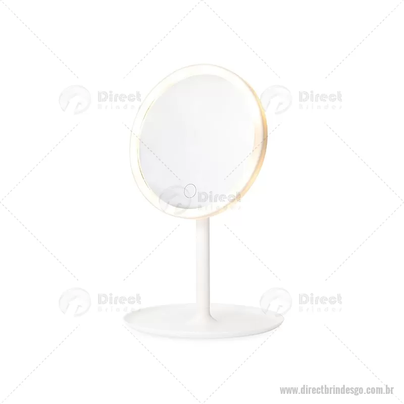 Espelho de Mesa Plástico com LED Descrição: Espelho de mesa com estrutura plástica de fácil montagem e rotação de até 90 graus. Possui iluminação em LED recarregável com três níveis de intensidade ajustáveis pelo botão de toque no espelho. Acompanha cabo USB-C. Altura : 30 cm x Largura : 18,5 cm Tamanho total aproximado (CxL): Diâmetro: 15 cm Peso aproximado (g): 273 - - DRTGOFEM117