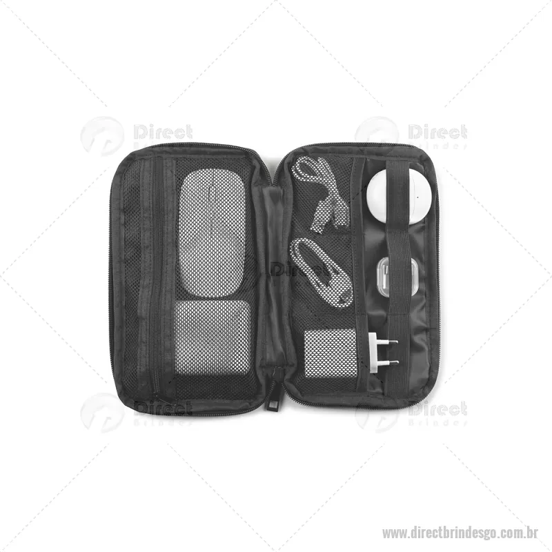 Bolsa organizadora em poliéster reciclado 600D de alta densidade com compartimento principal espaçoso para acessórios tecnológicos Bolsa organizadora para acessórios tecnológicos, recomendada para cabos, carregadores e pequenos dispositivos. Composta por poliéster reciclado 600D de alta densidade e forro em poliéster reciclado 210D. O compartimento principal contém vários bolsos para organizar individualmente todos os seus acessórios de maneira personalizada e funcional. Medidas: 220 x 130 x 25 mm Peso do Produto (g.): 72 - - DRTGOEMB047
