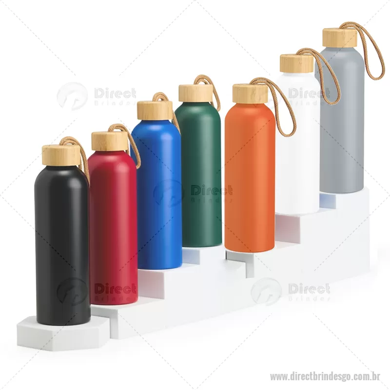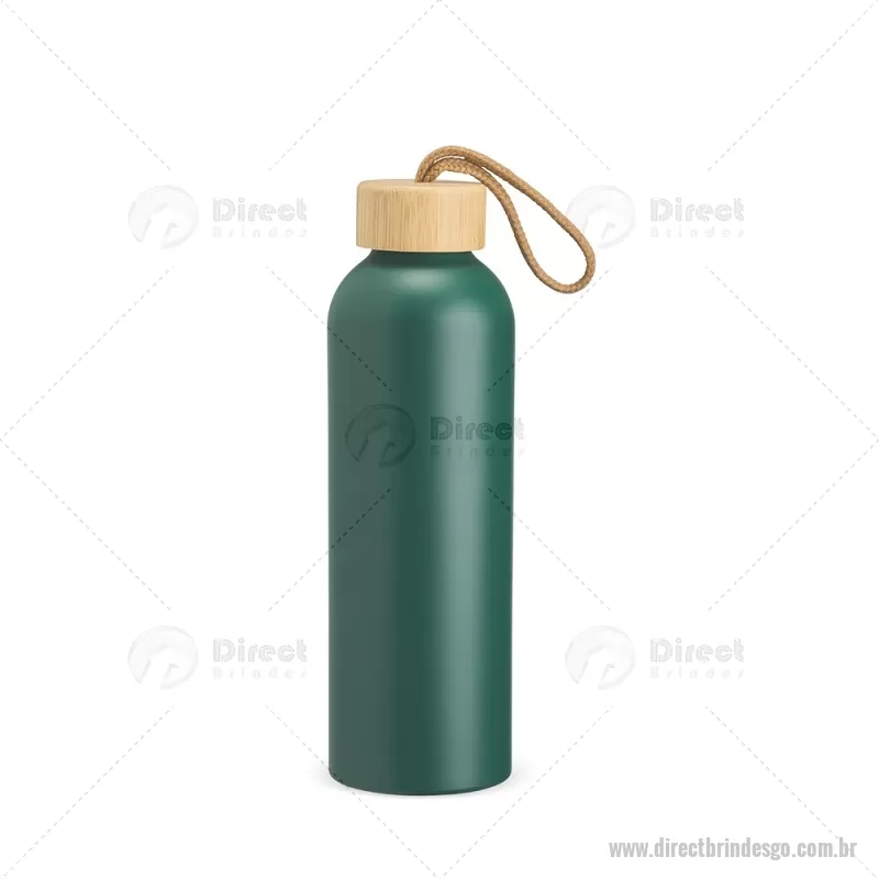 Garrafa em alumínio com capacidade máxima de 800ml. Possui tampa rosqueável em bambu com alça de algodão para facilitar o transporte. Altura : 23,5 cm x Largura : 7 cm x Circunferência : 23 cm Peso aproximado (g): 111 - - DRTGOGAR155