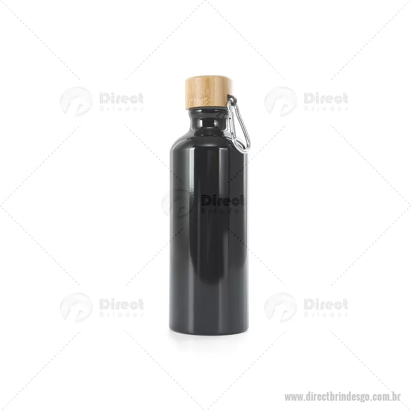 Garrafa de alumínio 500ml, possui tampa de bambu e acompanha mosquetão de alumínio. - - DRTGOGAT100