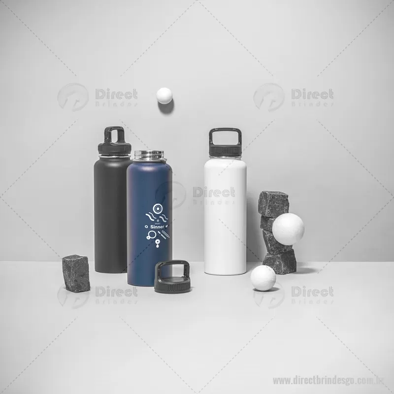 Garrafa em aço inoxidável (90% reciclado) com revestimento em pó e de grande capacidade até 1200 mL Garrafa esportiva em aço inox (90% reciclado) de parede dupla térmica, isolada a vácuo. Parede com revestimento em pó oferecendo mais durabilidade e resistência. Tampa com pega e um mosquetão que facilitam o transporte. Grande capacidade até 1.2 L. Fornecido em caixa presente de papel kraft. Certificação EU Food Grade. ø90 x 310 mm - - DRTGOGAT136