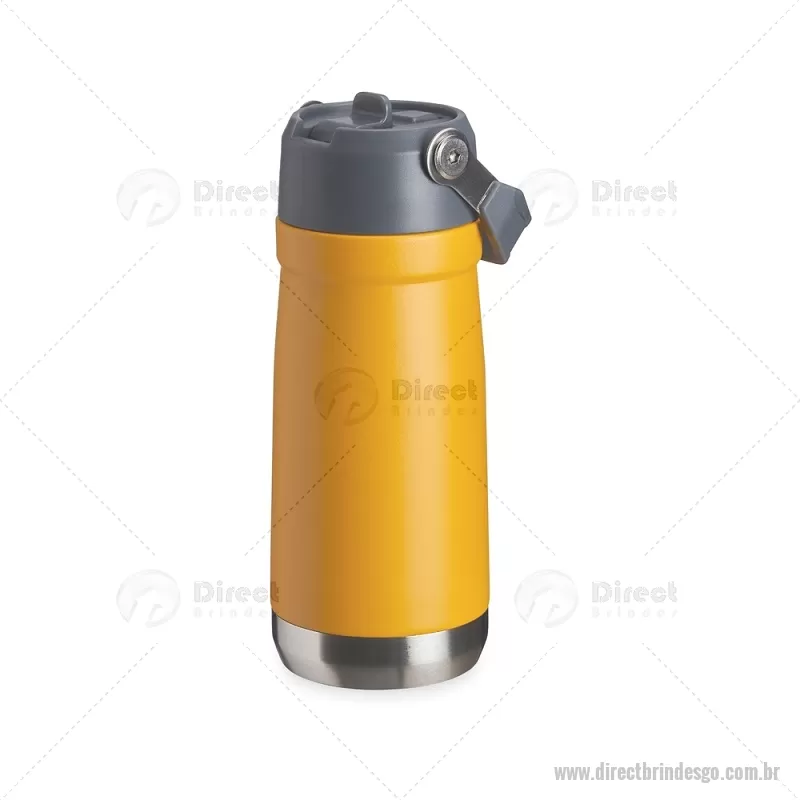 Garrafa térmica de parede dupla em inox, capacidade de 500ml. Tampa com alça de transporte, bico flip e canudo interno. Medidas produto: Altura : 21,5 cm x Largura : 8 cm x Circunferência : 25,4 cm Peso aproximado (g): 402 - - DRTGOGAT067