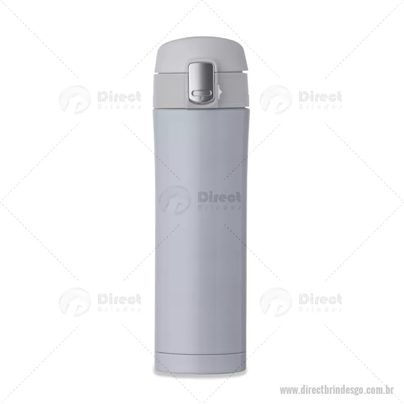Garrafa térmica de 450ml de metal inteira colorida com botão de abertura prata. Possui um sistema de trava com desenho indicativo de cadeados(aberto e fechado), ao levantar o botão pequeno basta pressionar o botão central maior para abrir a tampa(possui na parte interna borracha protetora evitando vazar o líquido). Para abrir a tampa por completo basta rosqueá-la, parte interna revestida em inox. Altura : 24 cm x Largura : 6,9 cm x Circunferência : 20,6 cm Peso aproximado (g): 300 - - DRTGOSQM009