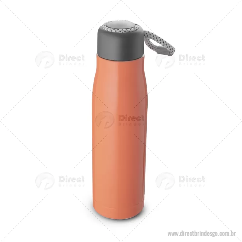 Garrafa térmica em aço inox 550ml brilhoso com parede dupla isolada a vácuo, com alça em corda para facilitar o transporte. Tampa plástica rosqueável e anel de silicone para vedação. Conserva líquidos : ??8 horas ??12 horas Dimensão do produto: 25xø7cm (AxøD) Peso do produto: 0,252kg - - DRTGOGAT101