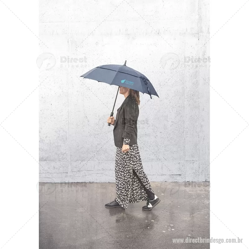 Guarda-chuva em 100% poliéster reciclado 190T (100% rPET) com abertura automática, com varetas em fibra de vidro e pega em ABS reciclado. Guarda-chuva com abertura automática e à prova de vento. Fornecido em bolsa de poliéster reciclado. Medidas:ø1055 x 840 mm Peso do Produto (g.): 543 - - DRTGOGCH051