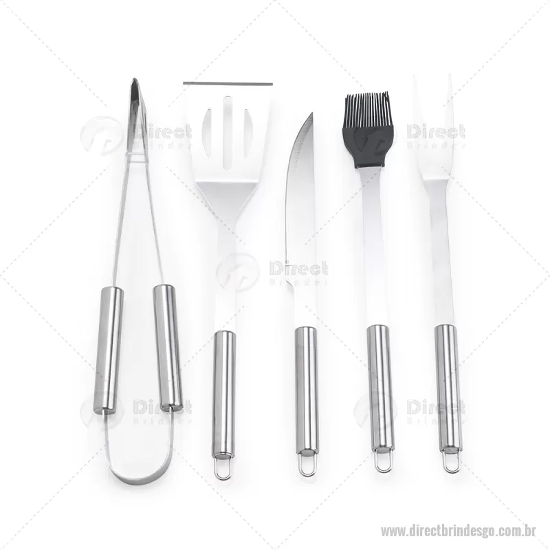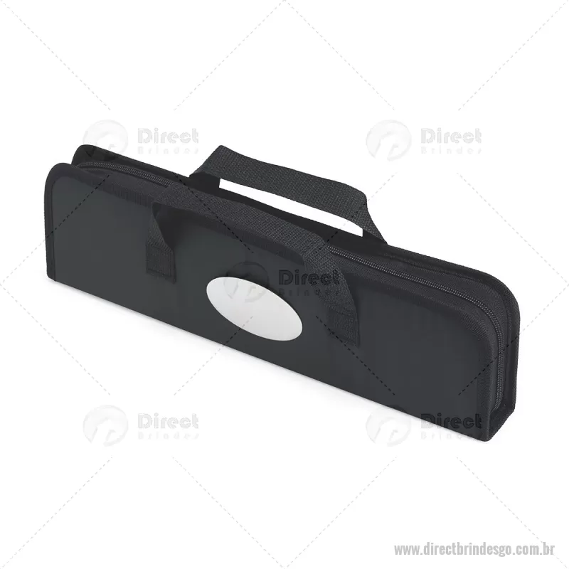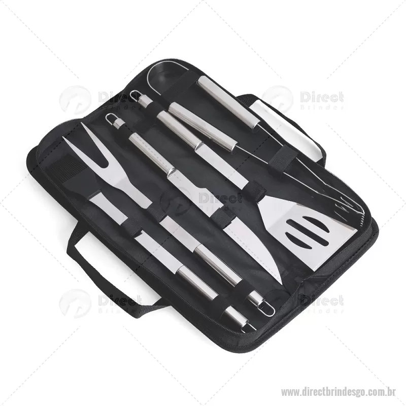 Kit Churrasco 5 Peças Descrição: Kit churrasco com cinco peças em inox. O conjunto inclui: uma faca de 6 polegadas, um garfo, uma espátula, um pincel com cerdas de silicone e um pegador. Acompanha estojo em nylon com um par de alças para transporte e placa metálica personalizável com verso autoadesivo para fixação. Altura : 4,5 cm x Largura : 11 cm x Comprimento : 38,5 cm Peso aproximado (g): 662 - - DRTGOKCH094