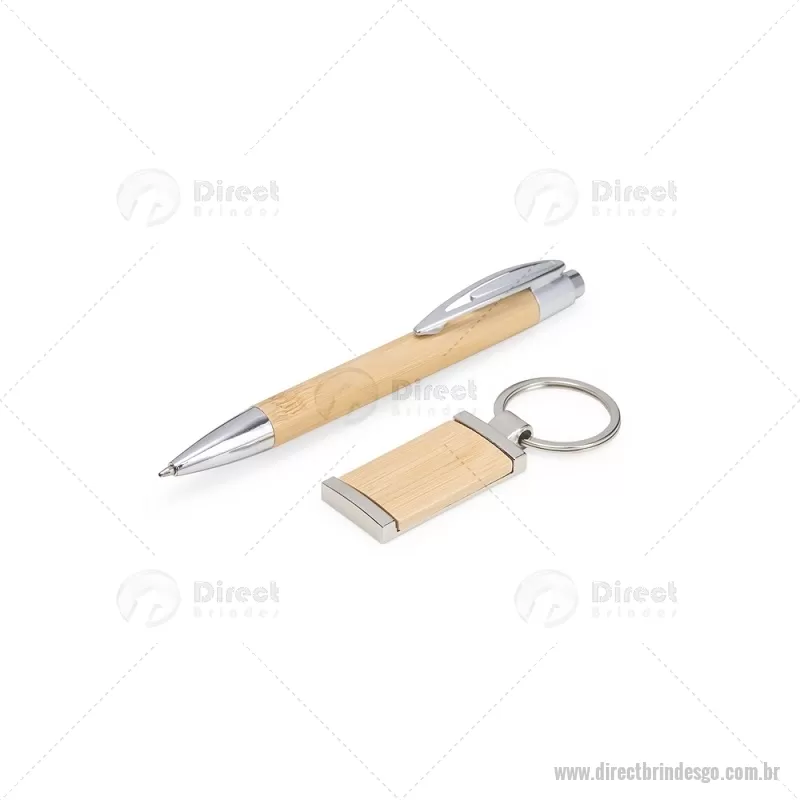 Kit Caneta e Chaveiro Bambu Este kit é a escolha ideal para quem aprecia praticidade e um design natural. O estojo com espuma interna mantém a caneta e o chaveiro bem organizados e protegidos, prontos para o uso. Combinando metal e bambu, as peças têm um visual elegante e resistente, destacando a beleza natural do bambu em cada detalhe. Uma opção funcional e charmosa, perfeita para o dia a dia ou para presentear com bom gosto e simplicidade. Largura : 9,7 cm x Comprimento : 16,9 cm Peso aproximado (g): 101 - - DRTGOKES071