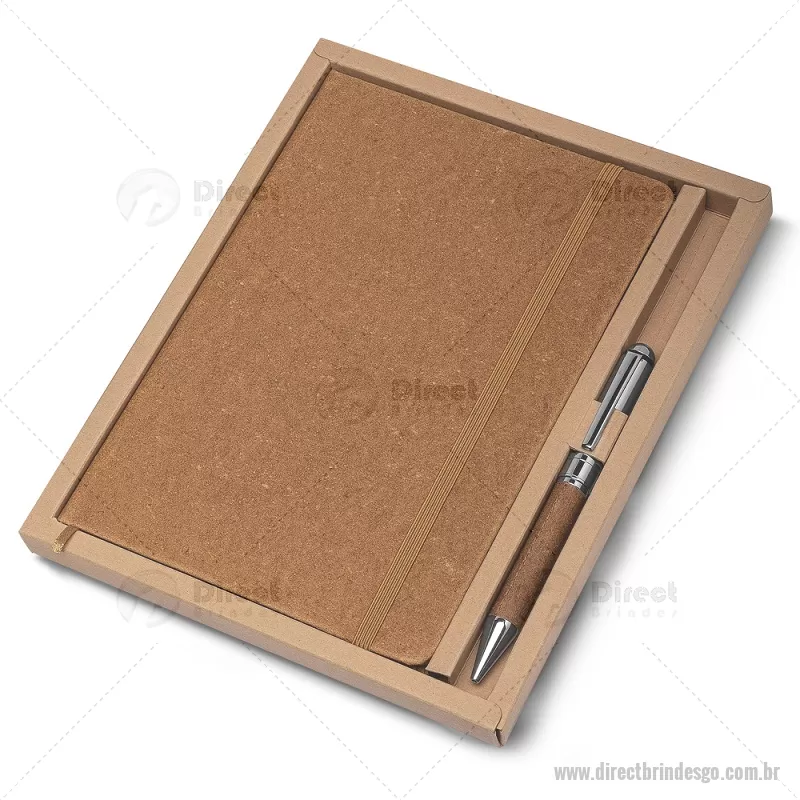 Kit caderno de anotações e caneta metálica. O kit acompanha a caneta metalica com detalhes em material reciclável, e sua embalagem é presentável feita de papel kraft. O caderno de anotações é feito de material reciclável que imita a representação do couro, em capa dura com miolo 80 folhas pautadas na cor bege. Dimensão do Produto: (21,3x14,5cm) Caderno Peso do Produto: (0,245kg) Caderno Peso do Produto: (0,028kg) Caneta - - DRTGOKES063