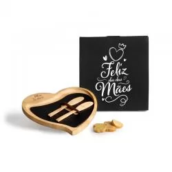 Kit Petisqueira em bambu com formato de coração e duas espátulas de 14 cm. Utilizamos o Bambu, por ser uma matéria prima ecológica, autossustentável e com alta resistência. Além de versátil, o Bambu é 30% mais leve que as madeiras de lei. Sua utilização não agride o meio ambiente, pois, quando ceifado rebrota em pouco tempo. Kit com boa área de impressão, ideal para datas comemorativas. Dia das Mães, Dia dos Namorados, Dia das Mulheres, Dia dos Pais, Outubro Rosa e etc... EMBALAGEM Caixa Preta - 235x215x20 mm (AxLxP) RECOMENDAÇÃO DE PERSONALIZAÇÃO Uma gravação a Laser CO2 na Tábua. Uma gravação Silk 1 cor na Tampa Caixa. - - DRTGOKGP009