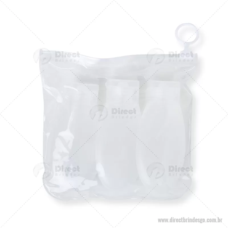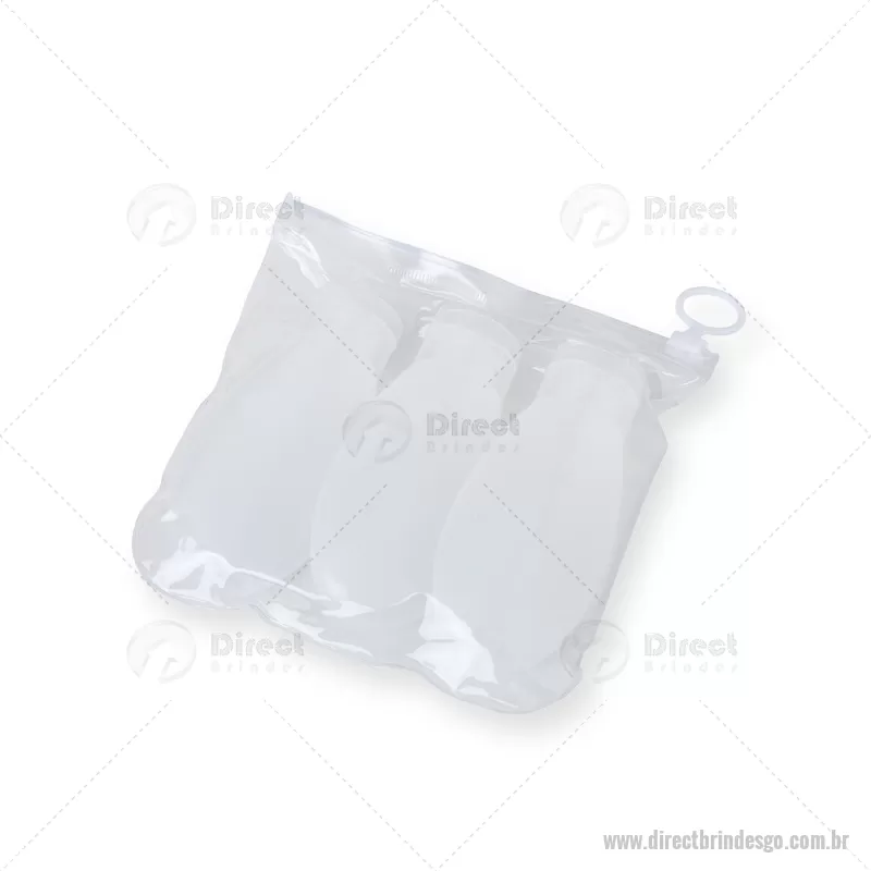 O kit viagem 3 Peças é a escolha perfeita para quem busca praticidade e organização durante as viagens. O conjunto inclui três frascos plásticos de 60ml, ideais para transportar líquidos e produtos de higiene pessoal, respeitando as normas de segurança para viagens aéreas. O estojo de PVC com ziplock mantém os itens organizados e seguros, além de evitar que a umidade espalhe para a área externa, caso os itens estejam molhados. Estojo: Altura : 14,9 cm x Largura : 15,1 cm Tamanho total aproximado (CxL): Frasco 10,7 cm x 5,1 cm Peso aproximado (g): 50 - - DRTGOKVG018