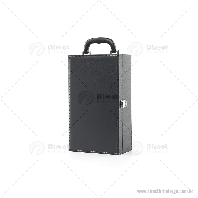 Kit vinho 4 Peças em maleta de couro sintético com duas repartições para garrafas. Contém saca-rolhas metálico, bico condutor com tampa, cortador de lacre e wine collar. Maleta com alça e trava de segurança, área interna revestida de veludo com suporte em couro sintético e velcro em cada repartição para fixação das garrafas. Altura : 11,8 cm x Largura : 19,9 cm x Comprimento : 34,3 cm Peso aproximado (g): 1094 - - DRTGOKVI044