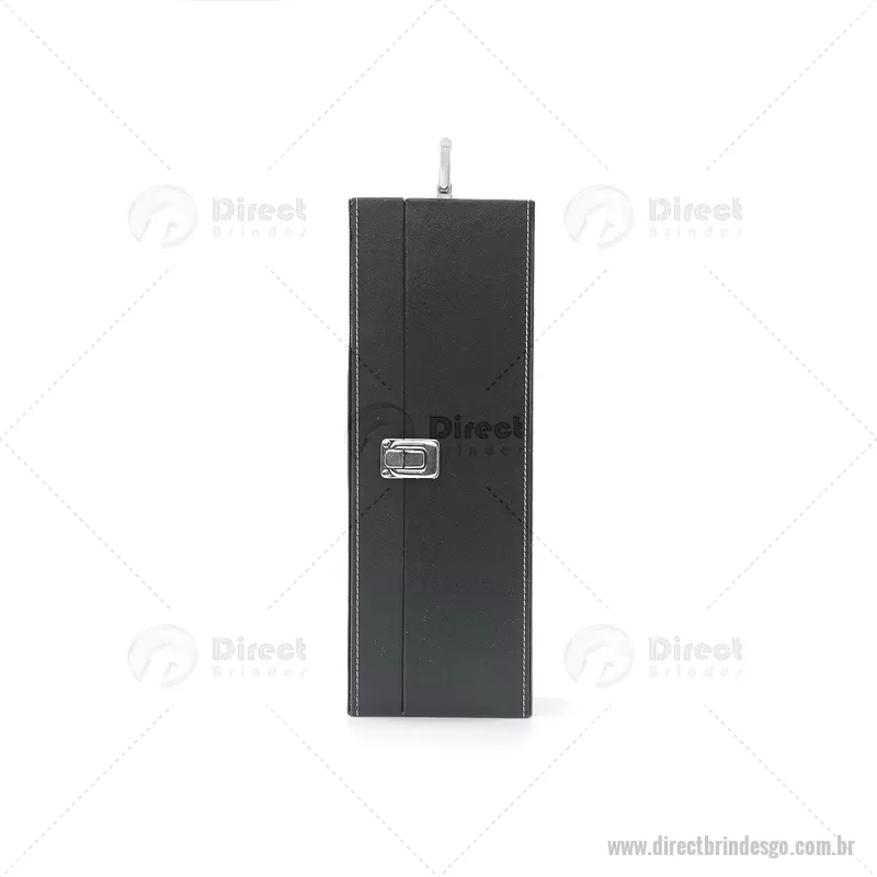 Kit vinho 4 peças em maleta de couro sintético. Contém saca-rolhas metálico, bico condutor com tampa, cortador de lacre e wine colar. Maleta com alça, trava de segurança e parte interna revestida de veludo com área de acomodação para garrafa. Altura : 11,9 cm x Largura : 11,4 cm x Comprimento : 34,2 cm Peso aproximado (g): 752 - - DRTGOKVI046