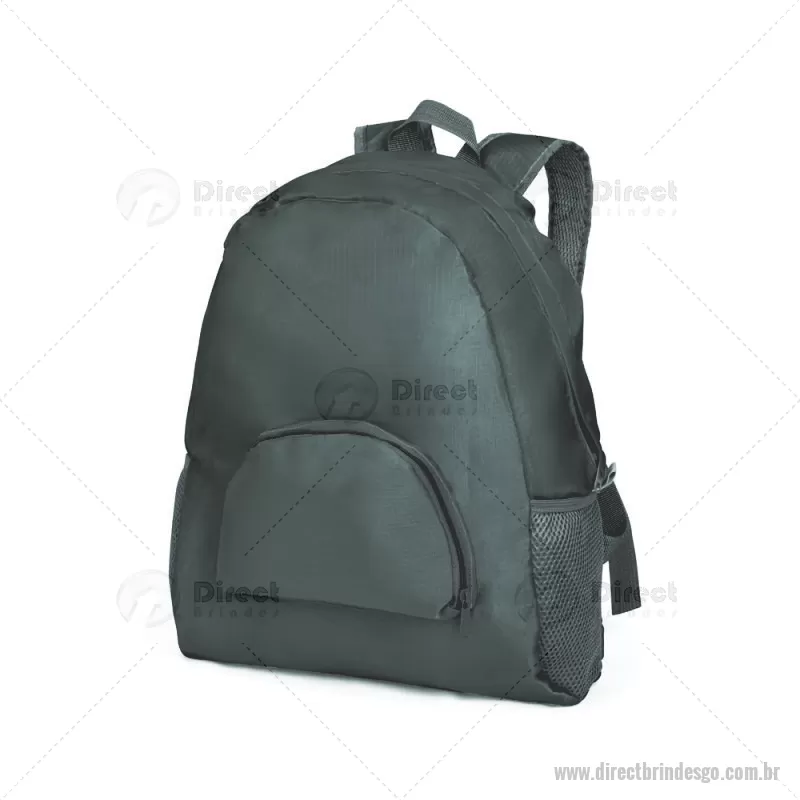 Mochila dobrável confeccionada em nylon 210D ripstop. Com bolso frontal, dois bolsos laterais em tela. Tamanho: 330 x 400 x 120 mm | Dobrada: 195 x 160 x 25 mm