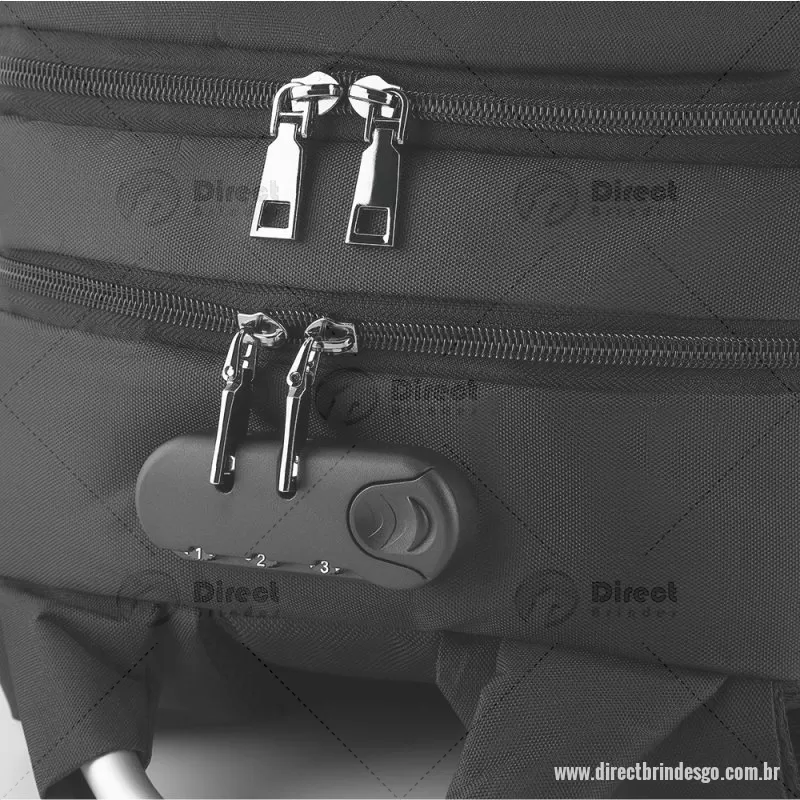 Uma mochila moderna com bastante espaço interno incluindo porta notebook, possui fechamento em cadeado com segredo. Alça de mão em metal, fita reflexiva, um bolso frontal grande. Divisórias internas para canetas, documentos e telefone celular. Alça almofadada. Saída USB e fone de ouvido. Tecido em poliéster. Esta é a melhor escolha para surpreender seus clientes, parceiros ou funcionários. - - DRTGOMC118