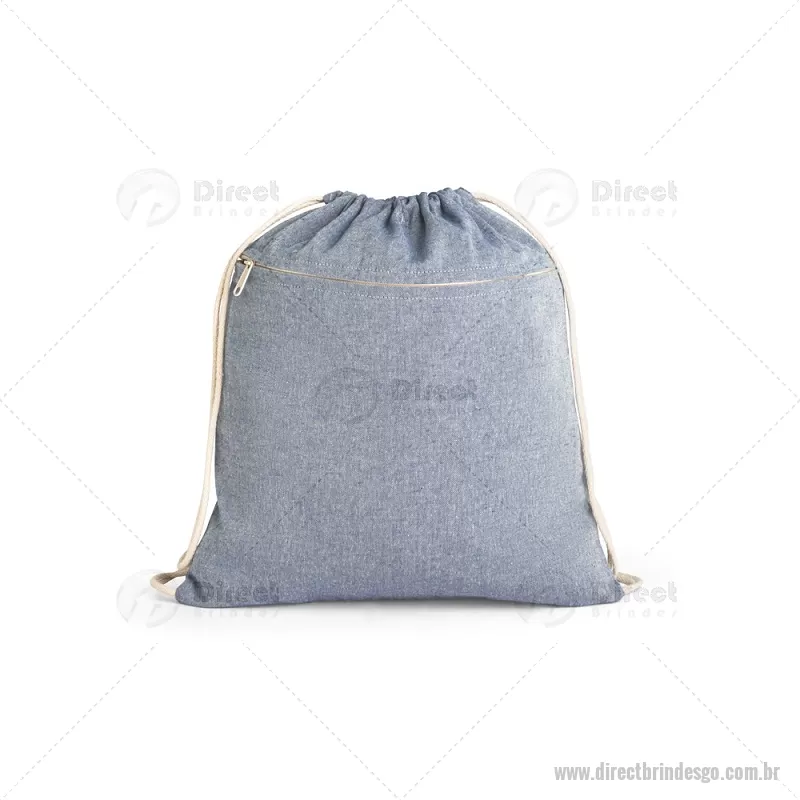 Sacola tipo mochila em algodão reciclado (140 g/m²), com bolso frontal com fecho discreto e alças em algodão. 37 x 41 mm - - DRTGOMCS014