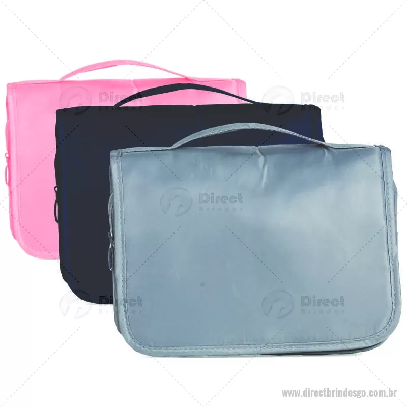 Necessaire organizadora “travel”. Tecido Sarja, abertura frontal por velcro e alça superior, parte interna com gancho plástico; bolso interno superior de pvc e bolso de tela superior, ambos de zíper; dois bolsos inferiores de zíper, sendo o primeiro com detalhe superior em tela e 3 divisões internas com 3 elásticos para fixação, segundo bolso na parte frontal interna; parte traseira possui um bolso externo. Perfeita para lhe acompanhar em viagens e até mesmo transportar seus itens pessoais do dia a dia com organização e praticidade. - - DRTGONC077