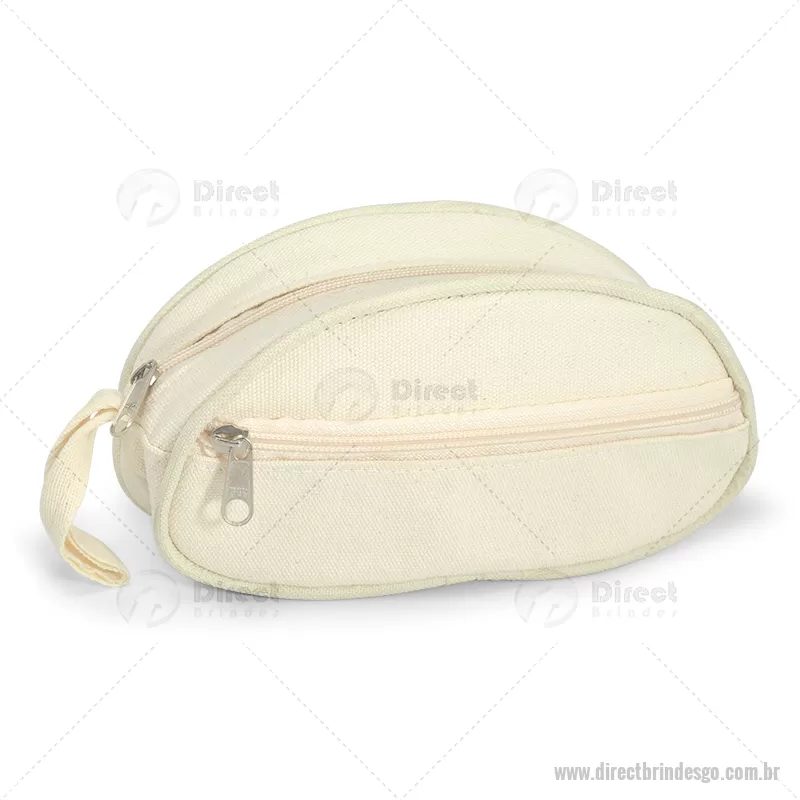 Necessaire confeccionada em 100% algodão cru personalizada. Possui bolso frontal com zíper e bolso principal para acomodar seu itens de higiene. Ideal para brindes promocionais e eventos corporativos. - - DRTGONC038