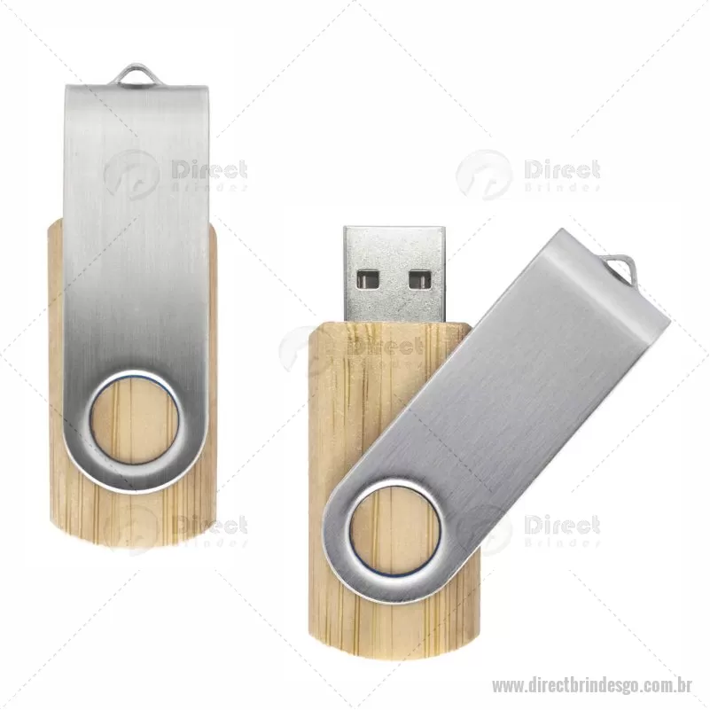 Pen drive giratório, parte interna em bambu. Possui uma “argola” na parte em metal prata que poderá ser utilizado para colocar algum cordão. Capacidade 4GB. Brinde ideal para eventos corporativos. - - DRTGOPEN117-4GB
