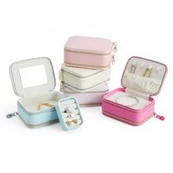 Porta-joias com espelho, produzido em plástico com alça de couro sintético e berço de silicone removível. - - DRTGOFEM103