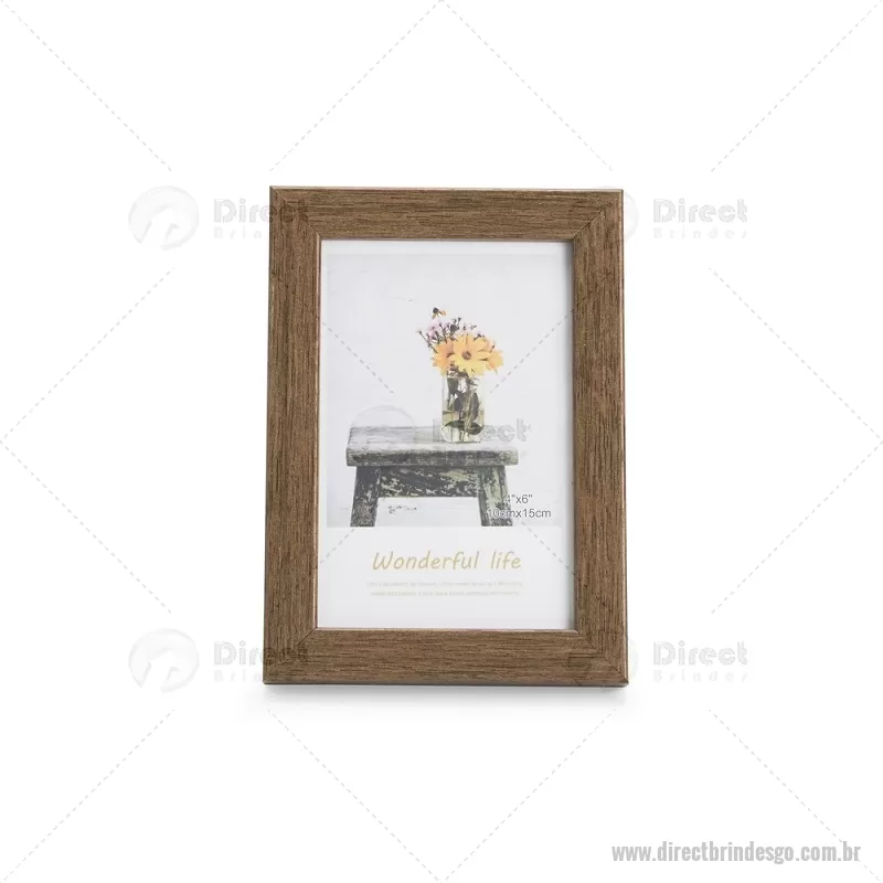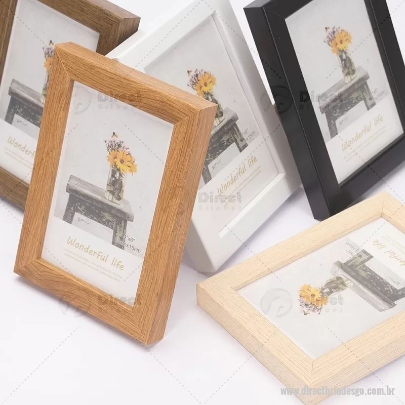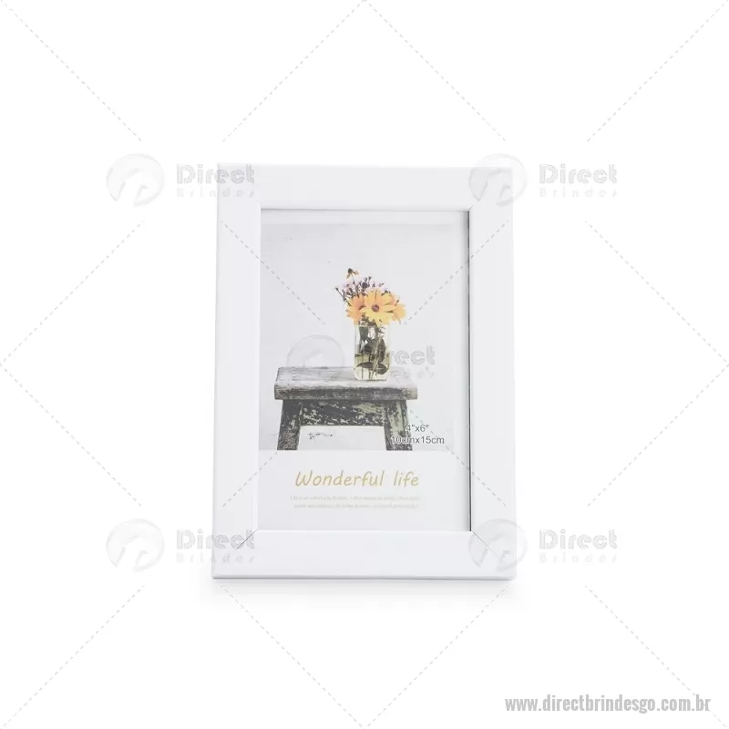 Porta-retratos para fotos no tamanho 10 x 15 cm, indicado para uso tanto na posição vertical quanto horizontal. Possui moldura em PVC, visor frontal em acetato, fundo em MDF e travas metálicas que garantem firmeza e fácil troca da imagem. Ideal para decorar ambientes com praticidade. - - DRTGOPR010