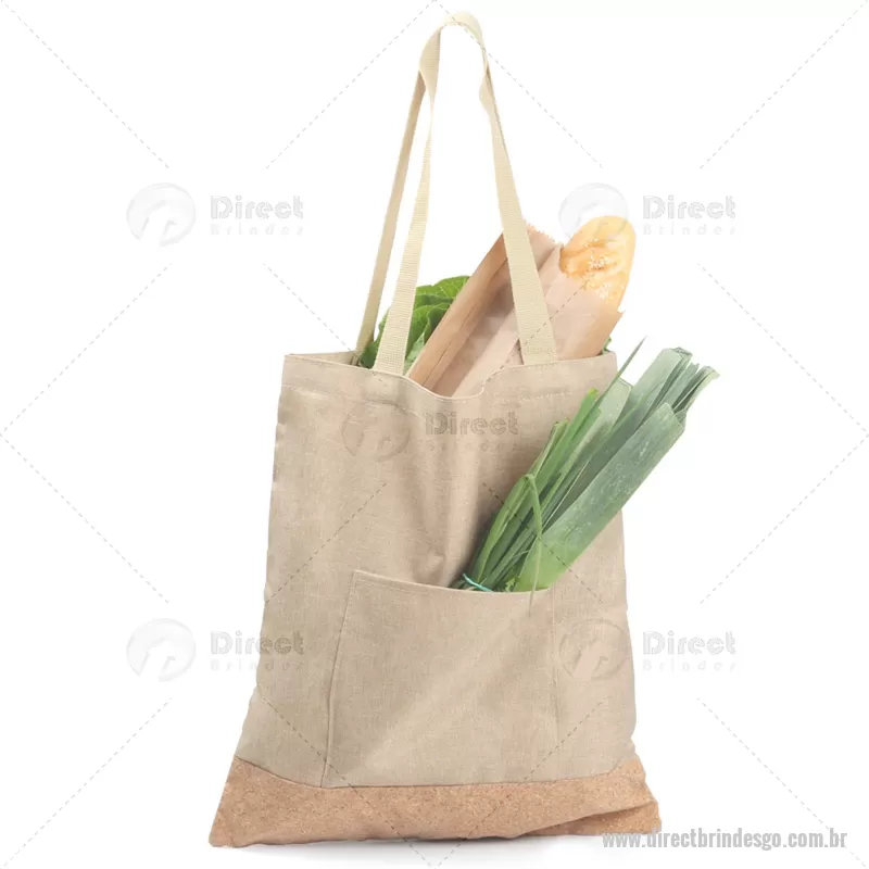 Sacola em Poliéster com detalhe em cortiça com alças e bolso frontal. - - DRTGOSAC066