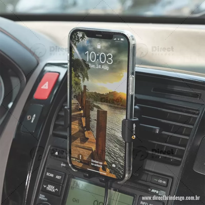 Suporte (auto) veicular com carregamento por indução. O produto contém hastes de ajuste automático. Acompanha presilha para encaixe na saída de ar do veículo e cabo USB para ativação do modo indução. Comprimento : Cabo 100 cm Peso aproximado (g): 99 - - DRTGOTEC439