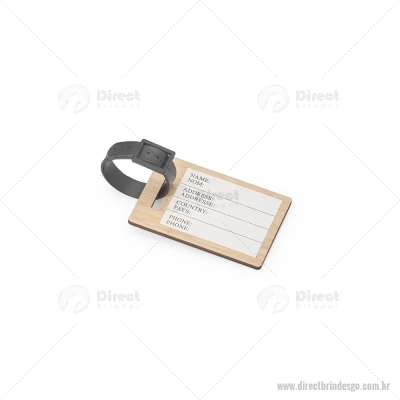 Tag identificador de bagagem em bambu. Parte frontal com área para identificação e verso liso. Possui fivela plástica com dois tamanhos para encaixe. Altura : 9 cm x Largura : 6 cm x Espessura : 0,3 cm Peso aproximado (g): 18 - - DRTGOKVG010
